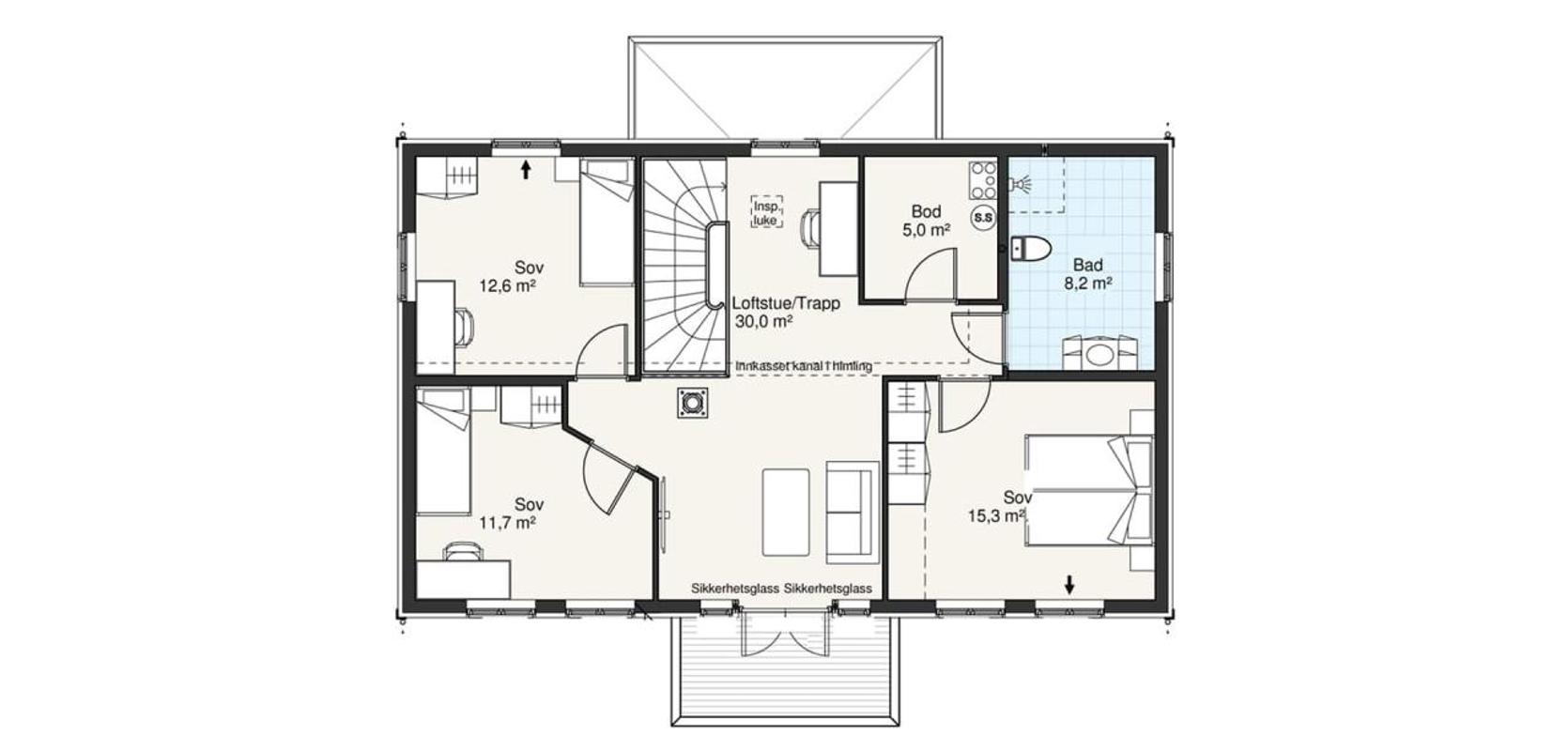 Med Mesterhus Karita har arkitekten lagt vekt på å skape et harmonisk og tidløst fasadeuttrykk. Den midtsentrerte balkongen og et overbygd inngangsparti er med på å gi huset en herskapelig stil. Den romslige hallen med trapp opp til andreetasje og doble dører inn til stua, gir et flott inntrykk når du eller dine gjester kommer inn i huset. Det er også praktisk med god plass der hele familien kommer inn, med en romslig bod, bad og vaskerom lett tilgjengelig.