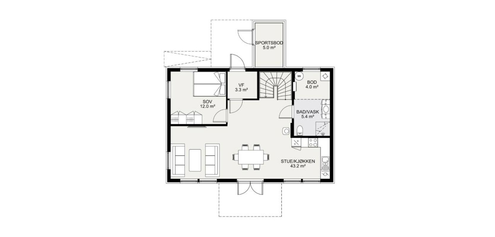 Med sine fire soverom og praktiske planløsning er dette en perfekt bolig for en småbarnsfamilie. Og med alle hovedfunksjoner på ett plan, kan dette være din familiebolig for livet.