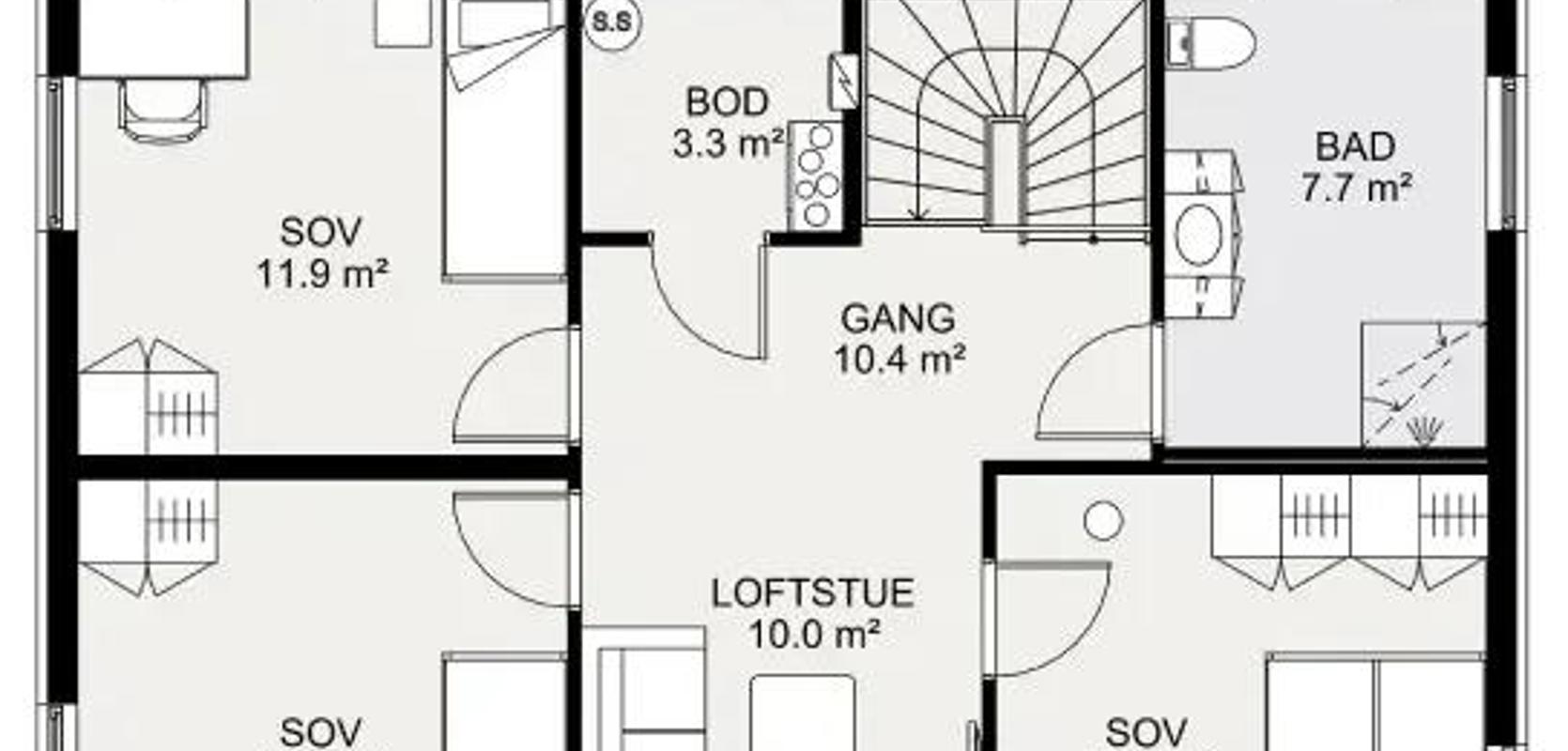 Med sine fire soverom og praktiske planløsning er dette en perfekt bolig for en småbarnsfamilie. Og med alle hovedfunksjoner på ett plan, kan dette være din familiebolig for livet.