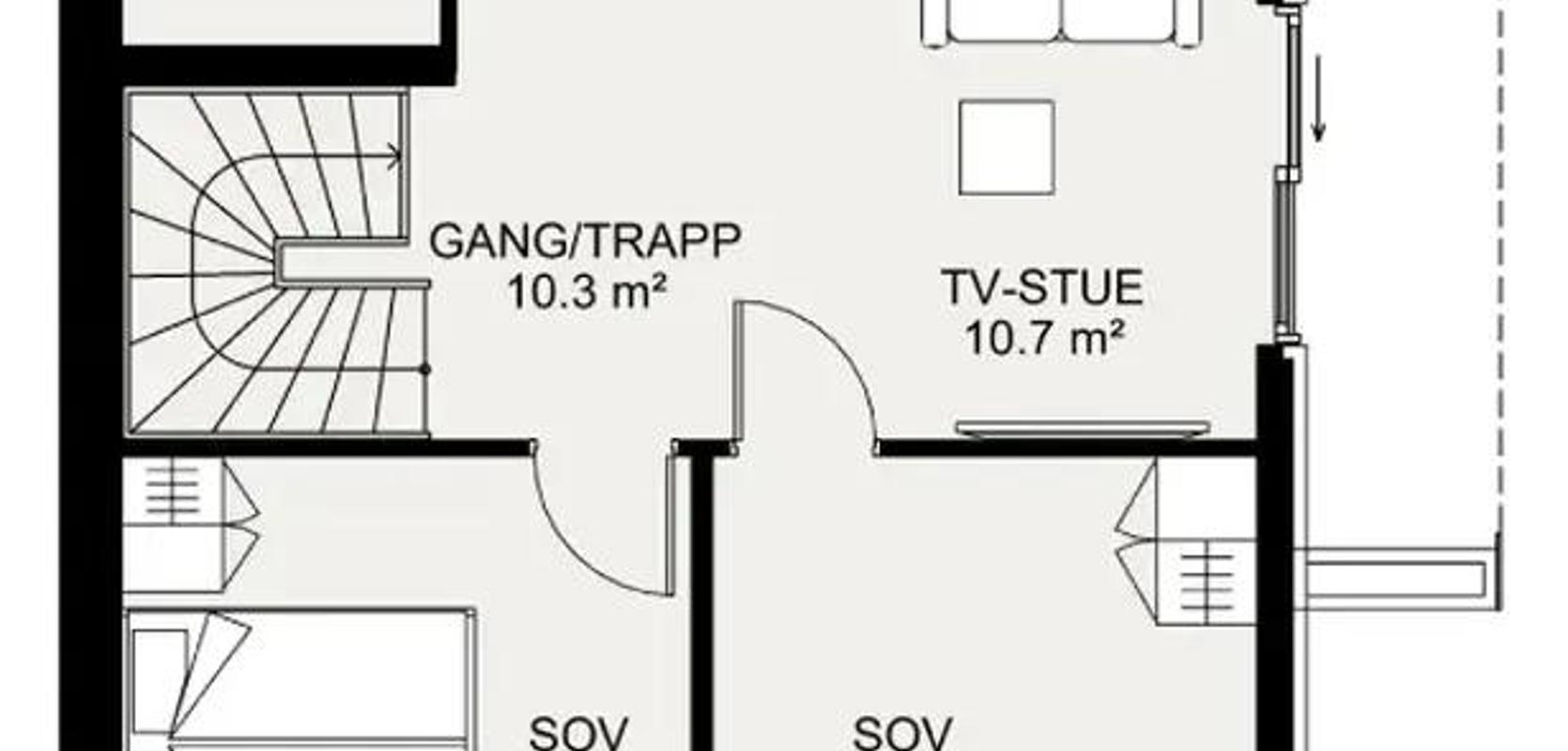 På grunn av den skrå tomten ligger adkomsten til huset på øvre plan, med en stor overbygget carport og sportsbod som skaper et flott inngangsparti og tilknytning til huset. Inne i huset finner du alle nødvendige hovedfunksjoner på ett plan, inkludert stue, kjøkken, bad og soverom. Det store fellesrommet, som kombinerer både kjøkken og stue, har et flott hjørnevindu og store vindusflater som gir mye lys og karakter. Du har også tilgang til en lang balkong fra stuen gjennom en skyvedør i glass som skaper en fin åpenhet på varme dager.