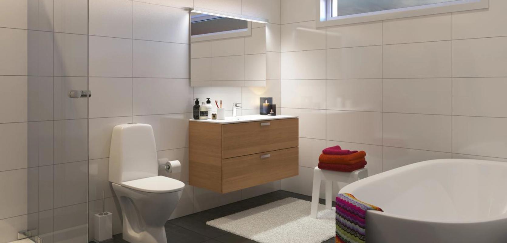 Signatur 306 er tilpasset skrå tomt, og hovedinngangen ligger på øvre plan, med kort vei til carporten. Rett ved siden av inngangen har du direkte adkomst til en utvendig sportsbod. Huset har også en stor, flott terrasse tilgjengelig fra stuen.