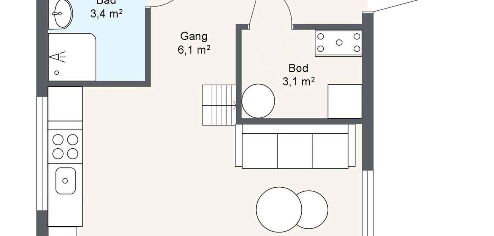 Det er verdt å merke at hemsen ikke har målbart areal på grunn av takhøyden, som er under 1,9 meter.